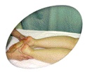 全身の緊張を取り除き、血行やリンパの流れを改善し股関節の調整ののち「O脚を改善する』脚部の固定を施します。